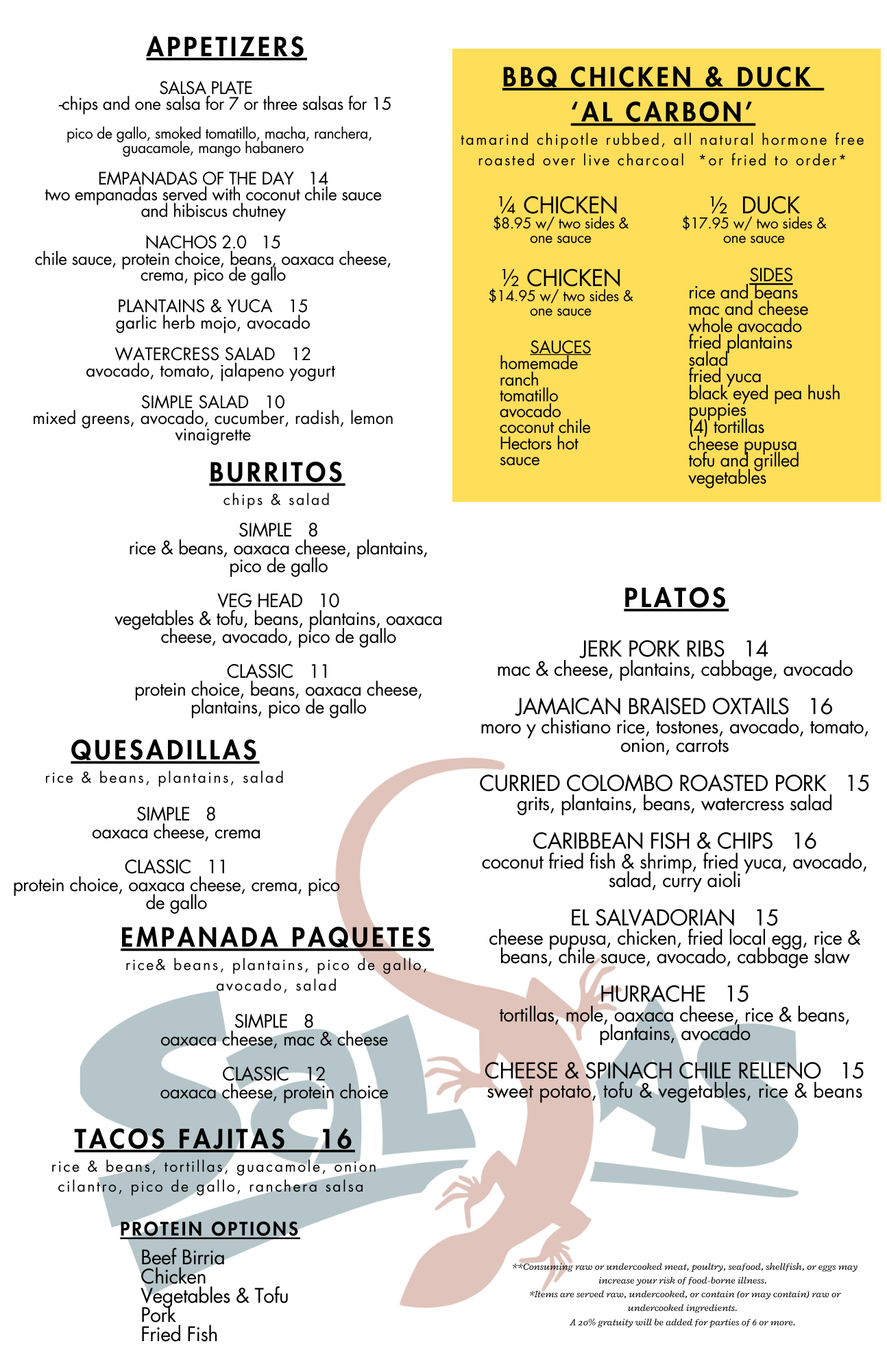 *Items are served raw, undercooked or contain (or may contain) raw or undercooked ingredients.